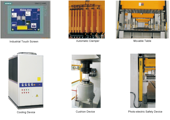 Movable Table, Displacement Sensor, Knocking Device, Cooling Device, Cushion Device, Photo-electric Safety Device, System Oil Heating Device, Industrial Touch Screen, Mould Exchanging Trolley, Automat