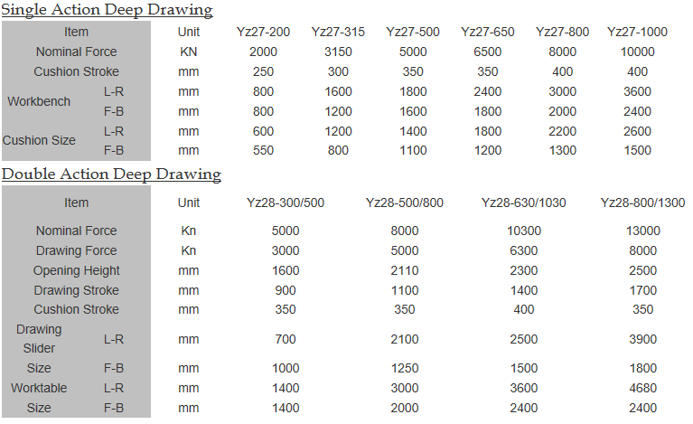Double/Single Action Deep Drawing Hydraulic Press Machine